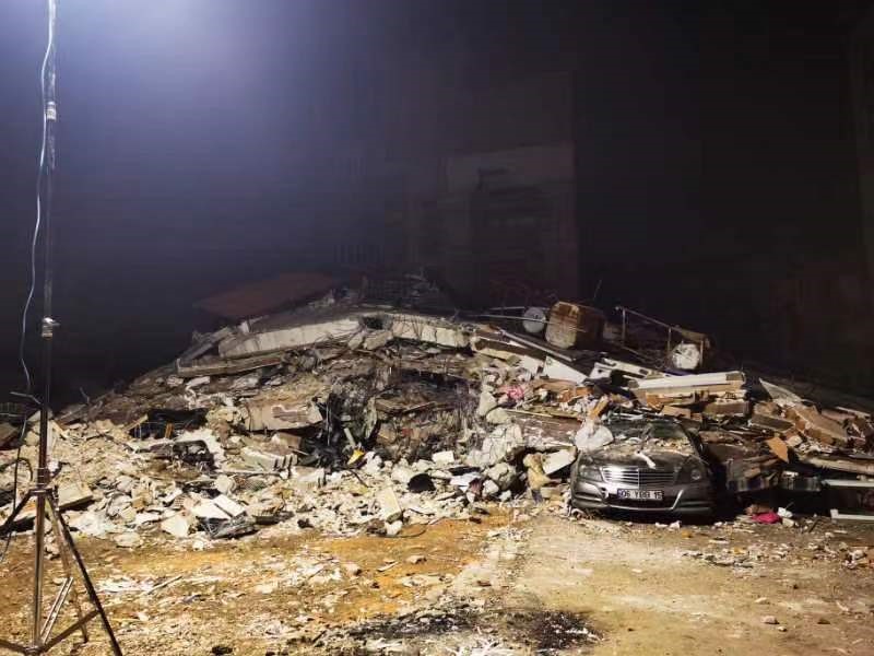 經過5小時車程,2月8日抵達土耳其受災嚴重的哈塔伊省安塔基亞市,按照任務要求,立即開展現場工作。