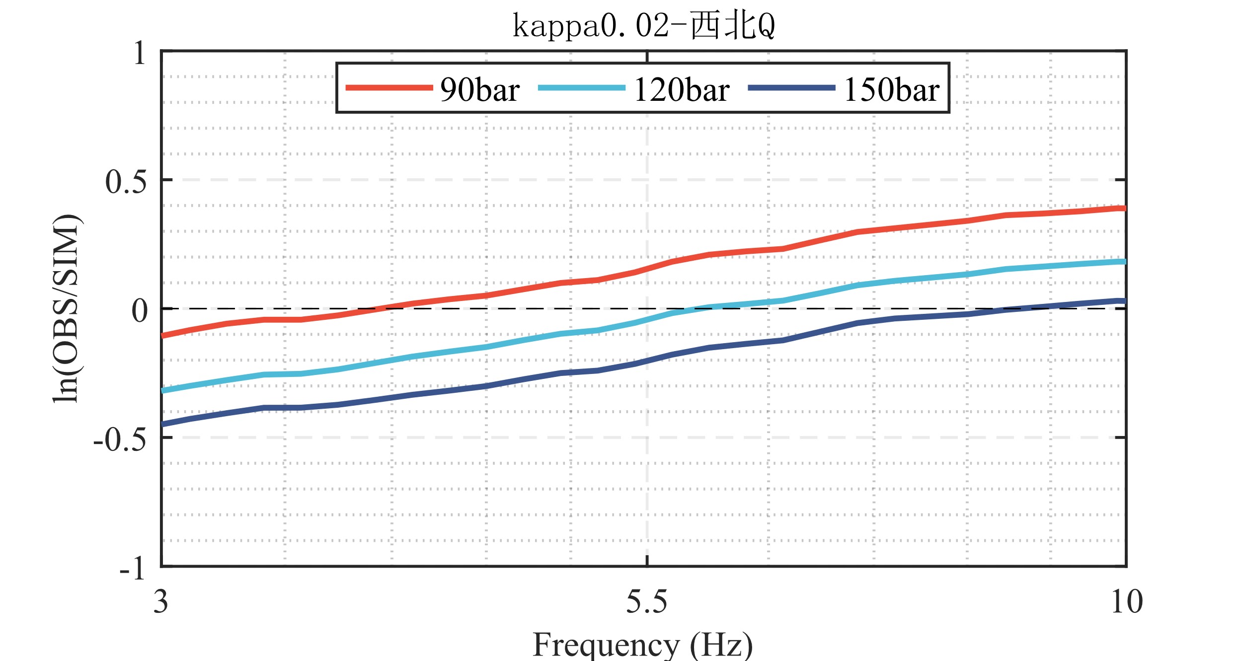 針對(duì)此次地震記錄呈現(xiàn)的高異常峰值,從震源機(jī)制分析其形成機(jī)理。以往研究和震害調(diào)查經(jīng)驗(yàn)表明,造成高異常峰值的主要原因包括:震源的高應(yīng)力降及特殊的地下介質(zhì)屬性。基于以往研究工作,我們分析了此次地震震源的應(yīng)力降。初步結(jié)果表明,此次地震震源區(qū)對(duì)應(yīng)的平均應(yīng)力降為90-150 bar左右(見圖4),高于全球歷史地震平均應(yīng)力降水平(30 bar),這與謝志南課題組前期估計(jì)蘆山主震逆沖型地震主破裂區(qū)平均應(yīng)力降水平(90-150 bar)大致相當(dāng)。因此,此次地震觀測(cè)到的高異常峰值現(xiàn)象,從震源的角度可以初步歸結(jié)為發(fā)震震源的高應(yīng)力降。