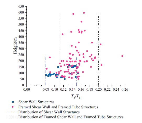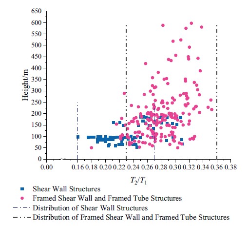 中國現(xiàn)行《建筑結構荷載規(guī)范》 GB50009-2012附錄F中,對高層建筑的自振周期給出了經驗公式。該公式基于1974年的《工業(yè)與民用建筑抗震設計規(guī)范(試行)》TJ 11-74和1987年的《建筑結構荷載規(guī)范》GBJ 9-87,通過大量建筑物自振周期的實測數(shù)據(jù)對其進行了修正和補充。但是,這一時期建筑樣本的高度基本都在50m以下,僅有少量建筑的高度在50-100m。當前中國修建了大量50m以上的建筑,而高層建筑的自振周期經驗公式仍沿用于87規(guī)范,設計理論相比當前工程現(xiàn)狀存在一定滯后。