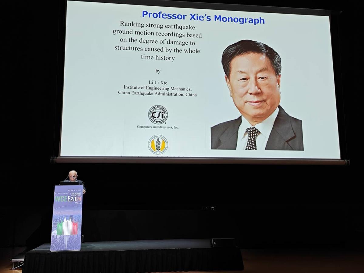 會上,謝禮立院士以《強地震動按破壞強度的排序研究(Ranking strong earthquake ground motion recordings based on the degree of damage to structures caused by the whole time history)》為題做大會報告。IAEE前主席中島正愛教授親自主持。IAEE專門出資為謝禮立的此項研究成果以“閱讀大師”專著正式出版,贈送給來自全球100多個國家和地區的四千多名與會學者。這本專著凝聚了謝禮立院士及其團隊自本世紀初以來歷經20余年的研究獲得的重要研究成果。